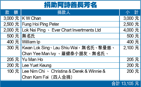 二十四歲的阿詩,育有兩名現年分別四歲及兩個月大女兒,其任職跟車司機男友阿雄,早前犯事被判入獄,令母女生活陷困。 蘋果基金曾撥款五千元,助阿詩清繳欠費。近日,她另接獲讀者捐款合共一萬三千一百零五元。 捐款編號:C1401 暖流熱線 電話:29908688 傳真:23702192 電郵:[email protected] 網址: http://www.charity.atnext.com