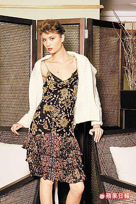 其他秋冬新裝還有人像圖案羊毛sweater襯ruffles短裙;米色開胸針織冷衫配花卉圖案ruffles連身裙;而森林孔雀圖案V領雪紡連身裙,裙的兩側還放上彩花圖案stripe,實是放眼世外桃源。