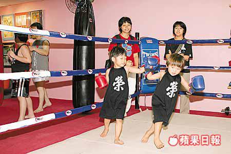 向柏榮的Wunique拳館內共有十八隊泰拳親子組合,有父親帶着兒子的,有母親帶着女兒的,年齡最細的小朋友只得兩歲半。他們穿着整齊的拳館服裝,套上了拳套,你一拳,我一腳的,似模似樣。