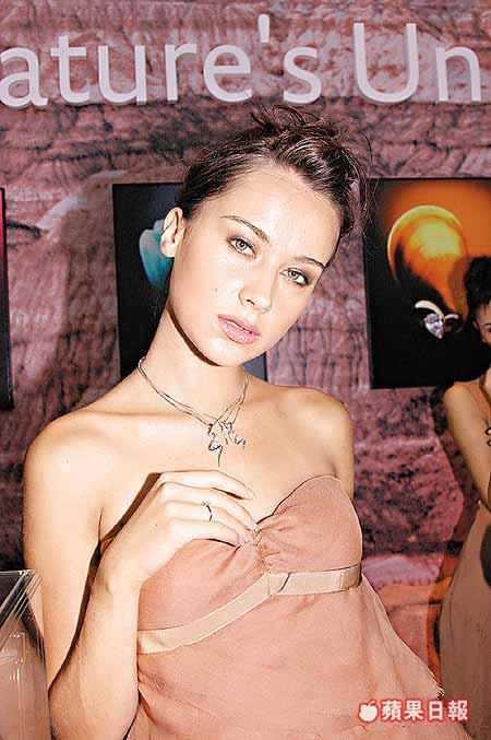 名模周汶錡及LisaS.等昨日往灣仔會展,演出國際鑽石商貿公司(DTC)的「大自然獻禮」珠寶展,其中周汶錡示範由張王幼倫設計、總重量達一百卡的黑鑽加鑽坯珠寶,她表示首次佩戴由未經打磨的鑽坯設計而成的珠寶,笑言這類設計原始味濃,戴出街也不會招來匪徒垂涎。