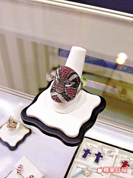 這款充滿中國特色的面譜造型戒指,表面嵌滿黑鑽石和紅寶石,零售價約為1.6萬港元。