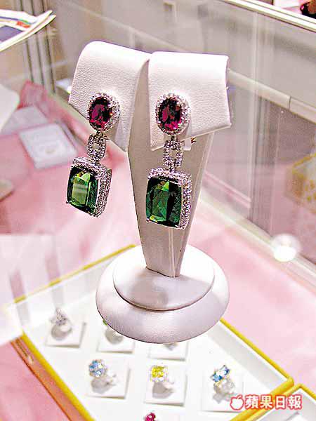 這對華貴的耳環,以以紅綠碧茜製成,批發價為數萬港元。