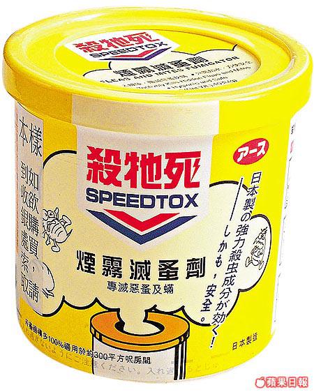 想方便可使用殺牠死煙霧殺蟲劑,只要將膠盒內的鐵罐取出,注入水後再放回鐵罐,煙霧自會噴出,適用於300平方呎範圍內,使用時需將門窗關起1至2小時。容量為10克。