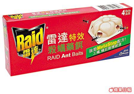 雷達特效殺蟻藥餌含有MetaStop配方,可有效將螞蟻引誘入內,然後將藥餌帶回巢穴並與同伴分享,引發巢內所有螞蟻連環死亡,一次過殺盡巢內蟻群,實行連環滅絕,一盒四個。