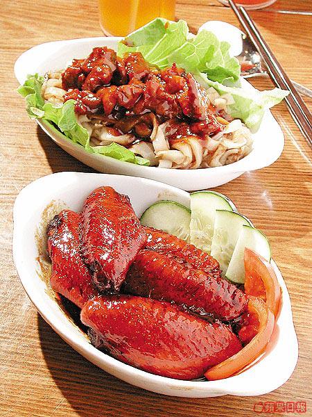 名牌食店的瑞士汁牛河和瑞士雞翼價錢揦脷,這裏出品黑漆漆的醬汁7分甜3分鹹,瑞汁牛河只將牛肉連汁淋在河粉上,食味和賣相一般。雞翼倒算美味,甜甜哋好食過滷水雞翼。