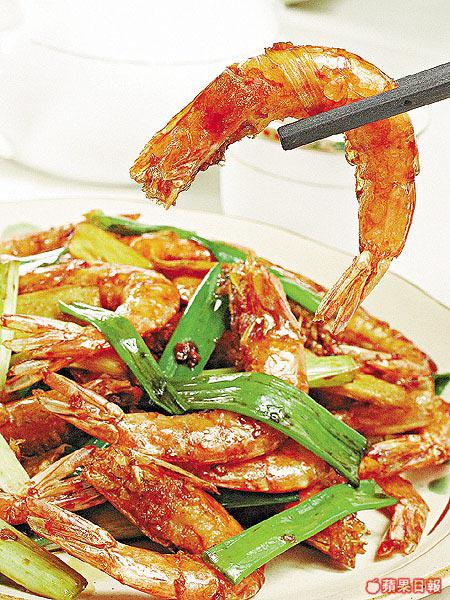 一碟有8両重海蝦,隻隻體積如手指般粗幼,當然不及蝦球啖啖肉吃得痛快,但加了醬油和大量薑葱同炒,上桌時濃郁的薑葱味撲鼻,蝦肉鮮甜。