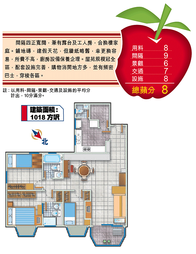 內櫳實用,令沙田第一城千呎戶,得享樓王美譽。全屋四正,曲尺廳間隔寬闊,例如介紹4座D室,飯廳可建十尺長的地櫃,還可額外放置鋼琴及餐桌。各房見使,輕易讓多組家具容身。此外,露台逾二十方呎,在此乘涼及看看街景,悠然自得,真寫意。
