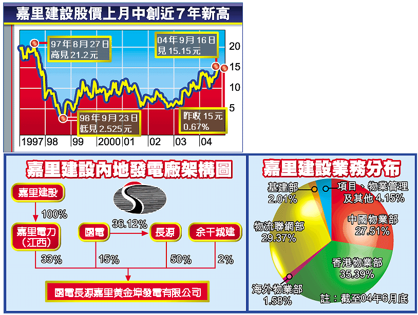 嘉里指出,由於成本效益,預期該發電廠的生產成本,將較江西省內其他電廠為低;同時,嘉里亦可透過參與合資公司,加強基建相關投資項目組合,及增加在電力投資的經驗及專門知識。按嘉里截至今年6月底止中期業績報告顯示,基建業務佔整體純利僅2%(見圖)。