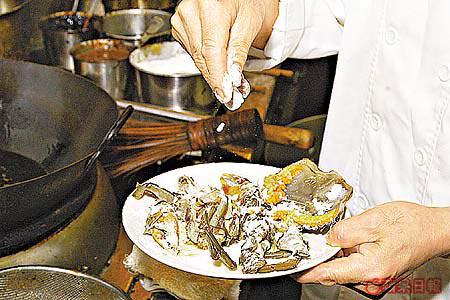 1.蟹泡油時油要滾,肉質才可保持爽脆。