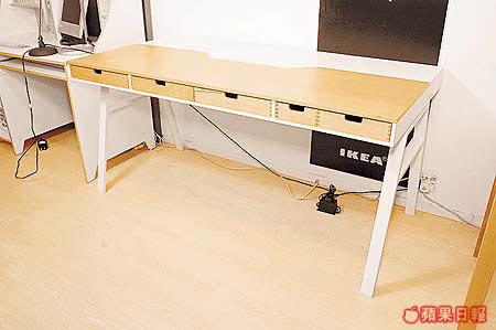 想將文具集中收納,可選這款設有特多抽屜的長枱。枱面有上揭式抽屜外,下面亦有多個大小不同的抽屜,可用來放CD、DVD、文件及其他文具。枱後可拉出電線,亦可用來作電腦枱之用。