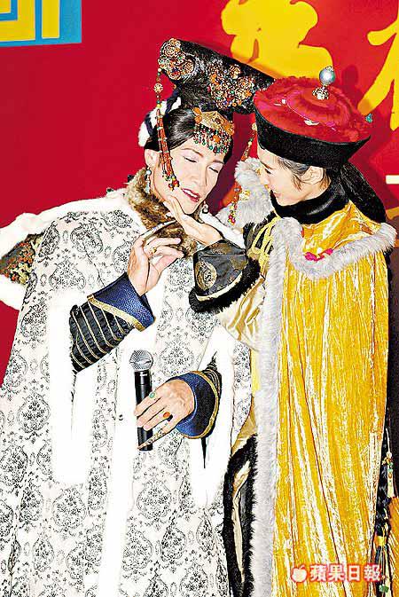 人氣劇集《金枝慾孽》幾位主角昨日齊齊出席慶功活動,眾人來個角色大兜亂娛賓,本來飾演孫白颺的林保怡扮如妃、孔武陳豪扮皇后、玉瑩黎姿扮皇帝、爾淳佘詩曼變孫白颺。其中以陳豪的加大碼妖冶皇后最驚嚇及搞笑,令他被工作人員輪流拉着強吻,認真慘情。