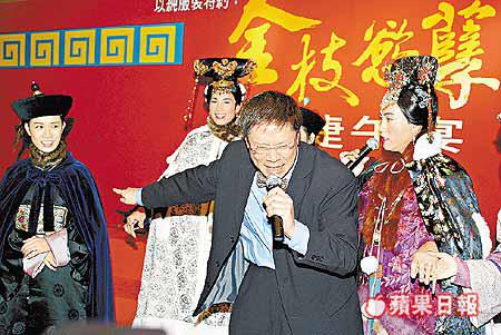 《金》劇大收,無綫昨日特地假尖沙嘴香格里拉酒店大排筵席,慰勞該劇台前幕後工作人員,除無綫廣播業務總經理陳志雲到場外,連行政副主席梁乃鵬亦專程到場打氣,場面墟冚。其間梁乃鵬更點名稱讚佘詩曼、鄧萃雯、林保怡和劉綽琪演技出眾,看來今年台慶「我最喜愛的男、女主角」獎項,將是林保怡、雯女和阿佘的囊中物。問到陳志雲會否開拍《金》劇續集或前傳時,他語氣堅決地說:「唔會拍,應該見好就收,或者可以考慮用同劇演員拍處境劇。」