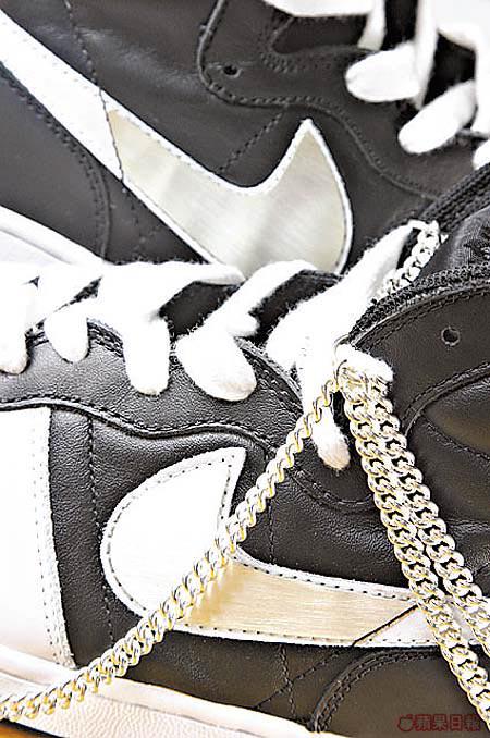 Customised(改造)波鞋其實經已不是甚麼新賣點,一來熱潮已過,二來作品真係驚喜不大,來來去去都係以畫Graffiti,所以近呢一年都甚少Artist再做。但近期又俾Nike發明了一種Customised波鞋新招,就係將波鞋加入首飾,名為Hoodwink系列。而其實這項諗頭雖然不是Nike自家Designer想出來的,而係由兩名英國新興Designer設計,但卻由Nike打正旗號推出,絕對係雷聲大雨點都大之作。