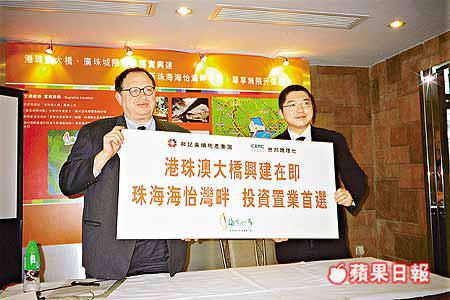 另外,和黃亦請嚟世邦魏理仕亞洲區執行董事聶安達,講吓珠海呢幾年嚟無論喺經濟、住宅樓面租售量及租售價上,都有顯著增長,加上泛珠三角概念、CEPA及大橋興建,珠海會成為經濟及交通樞紐,前景亮麗。