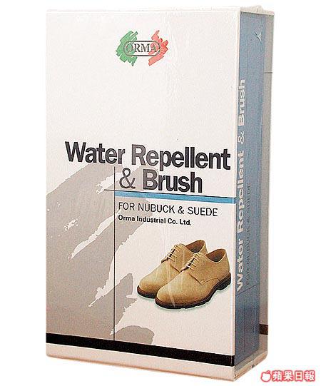 ORMA防水劑及鞋刷套裝,專為麖皮鞋而設。只要將噴劑噴於鞋面,乾後鞋面即具防水、防油、防污效果。盒內的鞋刷則可去除鞋面的塵埃,一套有齊護理及清潔,防水劑120毫升。