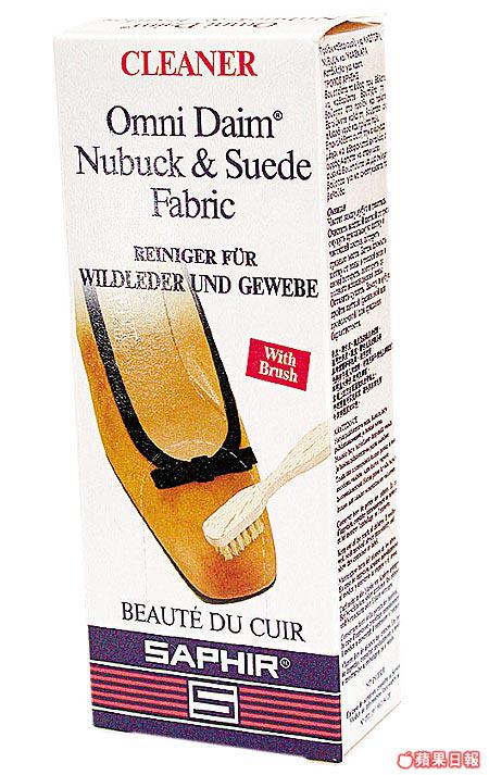 SAPHIR的麖皮紡織品清潔劑,適用於麖皮、縐綢等質料上。可將清潔劑均勻地塗在鞋面,然後用附送的小毛刷輕刷即能去除污迹,每支100毫升。