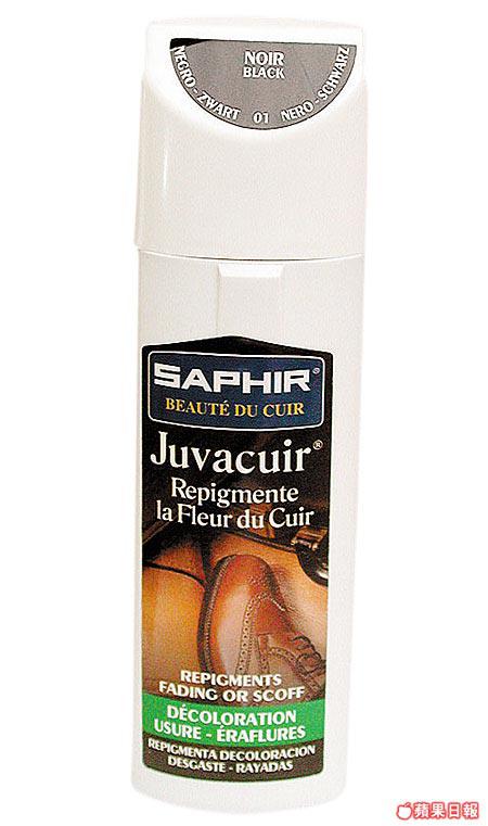 SAPHIR皮革補色水,適合用於已褪色的皮革製品上。將補色水均勻塗在皮革的表面,待乾後即可,備有藍啡等基本色選擇,每支75毫升。