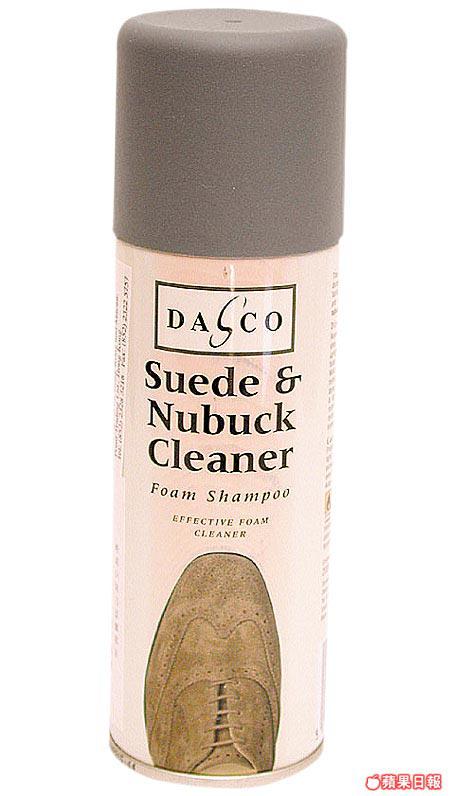 DASCO麖皮及磨砂皮清潔噴劑,含特效泡沫潔淨,能將鞋面的污迹去除。將噴劑噴於鞋面,然後用乾布打圈抹擦後,再以濕海綿輕抹並風乾即可。每支200毫升。