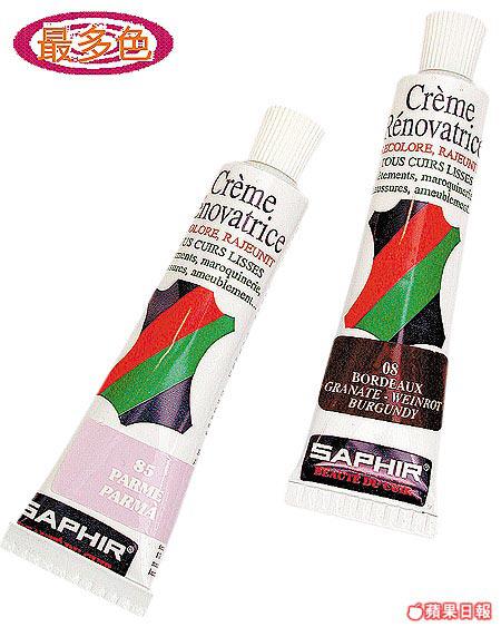 皮靴開始變舊或者出現花紋,可試用皮革修飾膏來修補。這支SAPHIR皮革修飾膏,可翻新、滋潤及美化皮革。顏色方面,備有粉紫、粉藍、黑、白等近20種顏色選擇,每支25毫升。