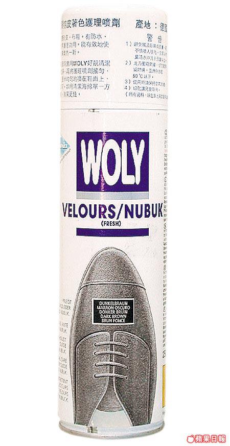 護麗免刷麖皮着色護理噴劑,能將皮革軟化,除令顏色更亮澤外,更兼備防水、防塵及防褪色效果。只要將護理噴劑噴於鞋面,風乾即可。適用於深啡色麖皮鞋,每支250毫升。