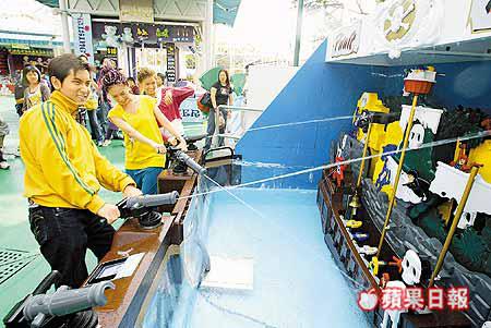女子組合2R與DoubleR成員范振鋒日前在海洋公園喪玩電動遊戲,齊玩海盜船及飛天韆鞦,想不到壯男范振鋒竟畏高,玩完海盜船頭暈又腳軟。
