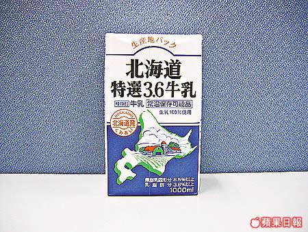 (北海道特選牛乳,奶味香濃;每1000毫升的牛奶中,有至少3.6%的乳脂成份保證,成份愈高奶味愈濃)
