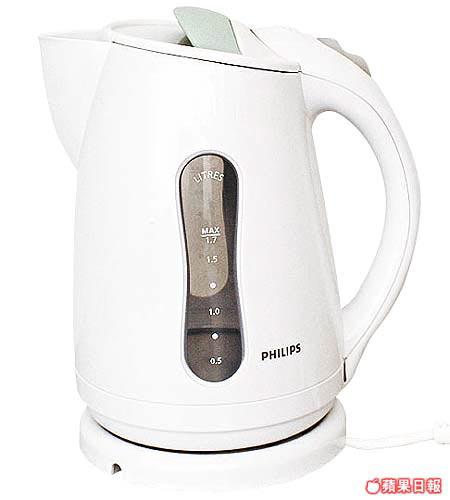 飛利浦電水煲,1.7公升容量,備有水滾自動熄掣、防煲乾水及過熱保護裝置。