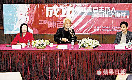 繼周星馳同周潤發到大學做講座嘉賓後,阿叻陳百祥都唔輸蝕,佢前晚應邀去珠海書院同一班新聞系學生真情對話,講吓點樣成為一個成功嘅節目主持人。阿叻平時鍾意認叻同搞笑,但面對成班學生就好正經,說話重大方得體㖭!佢話自己二十五歲破產後就重頭嚟過,只要肯努力點都會成功,佢重鼓勵學生讀書唔叻唔緊要,最緊要識變通同埋學多啲語言,尤其係國語,因為內地有咁多城市同電視台,機會多的是。