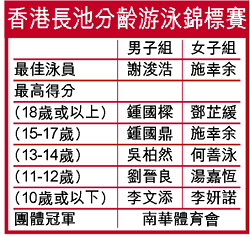在三日比賽中,施幸余刷新唯一一個香港紀錄及奪得五項個人賽冠軍,在毫無敵手下連奪兩屆「最佳泳員」。這位曾為了奧運會停學一年的十六歲泳手說:「奧運前的表現一直停滯不前,今次香港分齡賽開始有點冒升的感覺,所以對奪得最佳泳員感到很開心,但出來的成績仍有待改進。至於亞洲賽,我當然想參加,因為未參加過,又是四年才一次,如果搞不成,真的會失望。」男子組「最佳泳員」由方力申的聖約瑟同校師弟謝浚浩奪得。