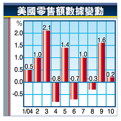 受惠於家具、衣服、汽油和食品需求轉殷,美國10月份零售額升0.2%,符合市場預期;9月零售額升幅由原先統計的1.5%,向上修訂為1.6%。