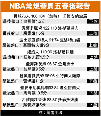 雖然溜馬的謝美恩奧尼爾轟入全場最高的三十九分,阿達斯也有二十九分進帳,但該隊此戰再有費特鍾斯及賓特等三名球員傷出,以致僅得八人披甲上陣,況且他們全場犯下了二十一次失誤,以致最終在加時以兩分飲恨。 綜合美國外電