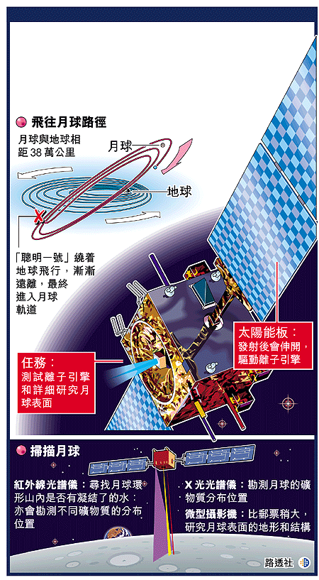 歐洲航天局「聰明一號」探測船經過13個月的旅程,周一會進入月球軌道,展開為期半年的連串科學實驗,包括探索月球形成;測試離子引擎效果。