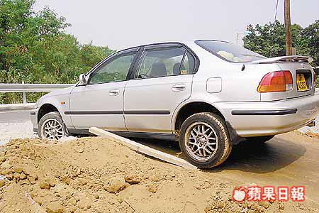 上水坑頭利華新村村民黃先生稱,路政署在坑頭村村口進行道路工程,但部份路面只鋪上沙泥,日前他駕車經過時,車輪被沙泥吸啜着,動彈不得,最後勞動地盤工人協助。