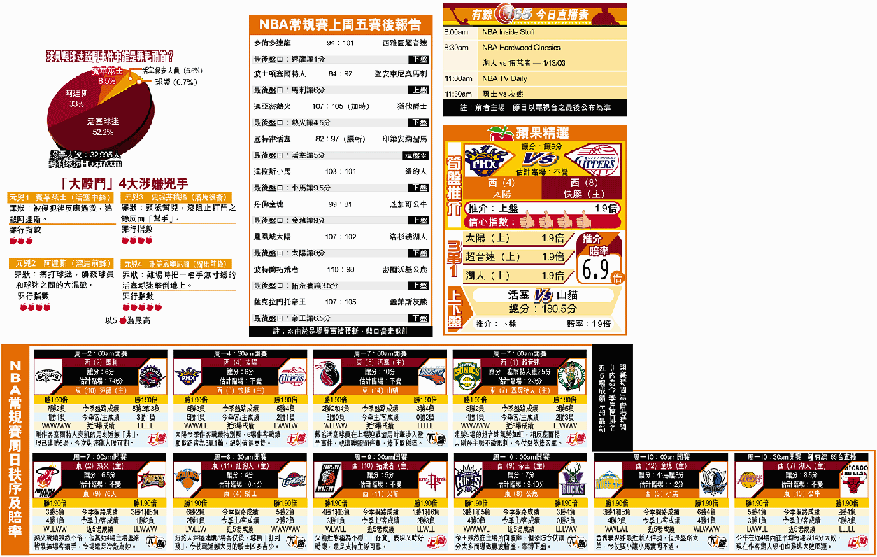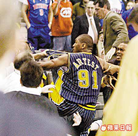 上周五晚發生了可能是NBA史上最火爆的球員與球迷毆鬥事件。底特律活塞於主場奧本山宮殿球場,迎撼死敵印第安納溜馬;到完場前溜馬的阿達斯與活塞中鋒賓華萊士發生衝突,繼而觸發溜馬球員與活塞球迷爆發集體毆鬥,場面完全失控,結果賽事史無前例地被迫腰斬。