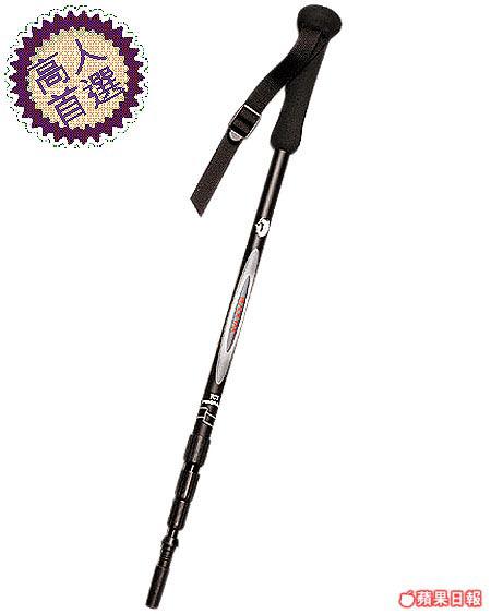 韓國BLACKYAK,以最頂級的飛機鋁製,棍尖用上硬度可媲美鑽石的烏合金,輕身耐用。有避震,最長可伸展至1米5,適合高人使用。擰開手柄頭可充當相機腳架或營架。