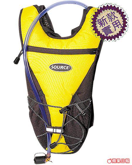 以色列SOURCE新款水袋,背囊形設計,容量有1.5L。夾形密封式水袋口,加上網形透氣肩帶,不會阻礙活動或漏水。袋前有彈弓帶可放風褸,證件可放在拉鏈袋。