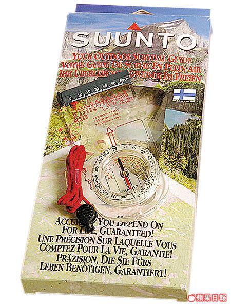 芬蘭SUUNTO指南針,轉盤及前進箭嘴均有夜光功能,入黑時分一樣用得。指南針頂部附有尺轆,可在地圖上量度兩地的距離。另備有放大鏡,用來睇地圖更清晰。