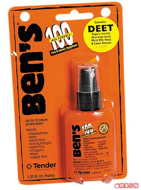 去到郊外少不免會被蚊咬,蚊怕水是另一必備隨身物品。Ben掇噴霧裝蚊怕水,含DEET成份可防蚊及多種蟲咬,可直接噴在手腳上,有效時間最多可達10小時。