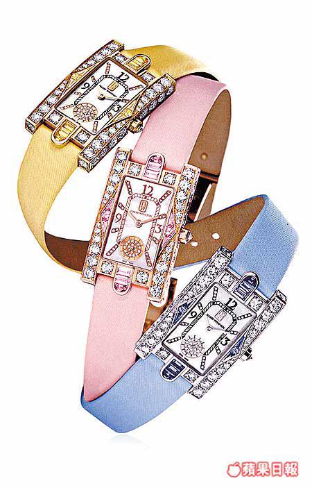 「Avenue」是品牌首個方形表面的設計,風格走ArtDeco路線,長表身旁以人手鑲了兩行寶石,華麗貴氣。「Signature」則是一隻無休止的萬年曆腕表,外形像手鈪般。而「Premier」則是強調腕表精細科技化的一面,是品牌首隻逆行展示日與秒的時計。