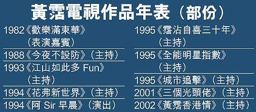【本報訊】鬼才黃霑歌影視圈都有涉足,在電視方面,曾為無綫《香港小姐競選》擔任司儀、替《城市追擊》做主持,而令人印象最深刻的,莫過於與倪匡和蔡瀾為亞視主持清談式節目《今夜不設防》,當年更被封為「三名嘴」之一,三人雖然經常喝醉了做節目,但觀眾依然很受落。 記者:林妙萍、卓寶花