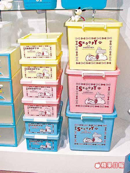 Snoopy是很富人氣的漫畫人物之一,Snoopy系列的抽櫃、儲物箱(圖)、垃圾桶及榨汁機,紅白配搭,為室內添上一份熱鬧氣氛。 (關屋化學)