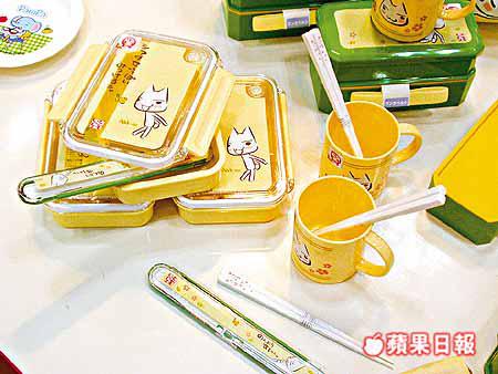 Sony貓產品系列,包括有餐盒、碗碟杯、筷子等,都印上表情多多的Sony貓。