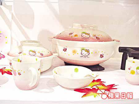 HelloKitty是不少日本女孩子的至愛,場內擺有清一色的HelloKitty物品,忠實的fans一定不會放過。這些HelloKitty餐具、砂鍋(圖)、燒餅夾及茶具,全都實用可愛。