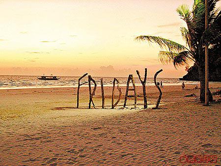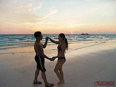 酒店的工作人員會在廣闊的沙灘上,婆娑的椰樹影下擺好餐桌,甚至在沙上畫出心形,放上燭光,然後,我們甚麼都不用準備,就手拿凍飲,坐在櫈上,一直等待近在咫尺的太陽向西方一直沉下沉下……長灘島的日落好美,藍色的天空和海洋轉眼間在變色,這一刻是黃,一會兒又披上紫的橙的桃紅的,甚至金的色彩,在調色盤的海和天不斷在變變變,真的太過醉人。此刻,最想躲進情人懷裏,一同沐浴在大自然的魔幻之中。