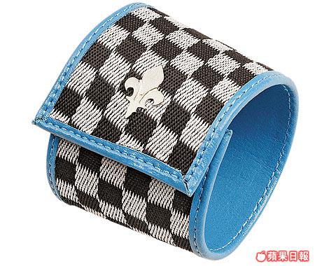 想要一點飾物點綴雙手的話,這隻用牛皮製成的手鈪是不錯的選擇。彩藍色的皮身上綴以黑白格仔,加上招牌童軍花,襯衫一流。