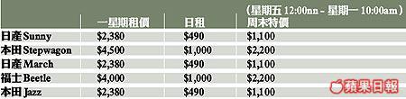 *豐田擁有70架短期出租車、而大昌行則有160架,雖然數目唔少,但每逢大時大節,預約額好快就爆滿,兩間車行現已接受預約,想聖誕有車玩就要快手喇。