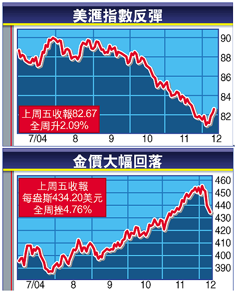 【本報綜合報道】美滙指數擺脫連跌11周劣勢,上周反彈逾2%,是近5個月以來最勁。聯邦儲備局料在本周加息,及基金和投資者在年底前回補美元空倉套利,成為托高美元的主要動力。但有外滙界人士認為,美元大勢仍弱,明年可能會重拾跌軌。