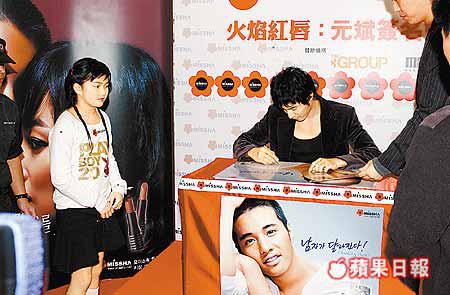 元斌昨日出席在旺角兆萬中心MISSHA化妝品店舉行的宣傳活動,一百三十名被抽中可獲簽名的幸運fans一早在場排隊,大部份都是少女,不過其中亦有數位男士、六十多歲的婆婆和小朋友,大會派出十多名護衞在場維持秩序,現場擠滿了一睹偶像風采的fans,不少fans企在欄杆上及企上停泊在馬路旁的泥頭車上觀望,亦有一些fans在對面樓宇的漫畫書局透過落地玻璃看偶像。