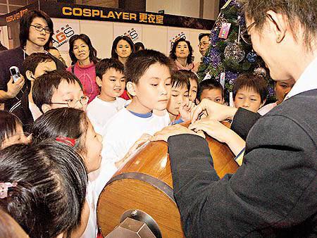 當送出十隻遊戲軟件後,到了全晚最高潮──激瘦版PlayStation2主機大抽獎!大家愈來愈逼近抽獎箱,不少小蘋果受不住誘惑,做出種種異常行為:有的以為雙手接觸到抽獎箱會帶來好運,有的甚至想伸手代替大哥哥抽獎,弄得從不打機的小辣椒,也好想把自己的名牌偷偷放進抽獎箱裏。結果由年紀最小的芍岭中獎,大朋友當然不會有怨言,大讓細嘛!