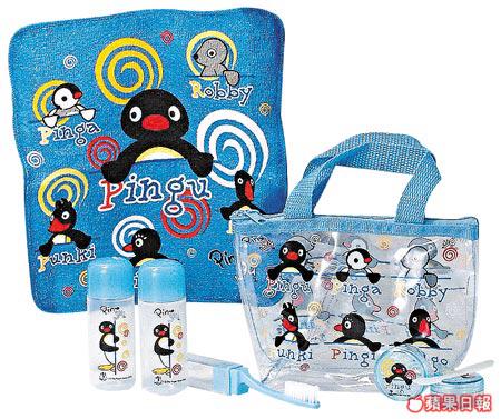 除Kitty外,你還可選擇Pingu旅行套裝。透明手挽袋內備有可分體的牙刷,毛巾、小膠樽及小膠罌各2個,可放平日用開的護膚品及沐浴用品。